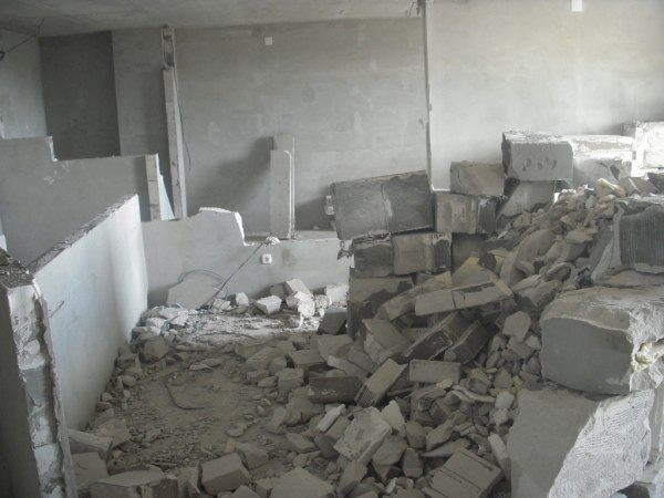 Для проведения разборки перегородок нужно иметь опыт расчетов, чтобы не повредились межэтажные перекрытия, и в конечном итоге не обрушилось демонтируемое здание. Существует специальная технология разборки, которой нужно придерживаться, чтобы не повредить жилое здание.